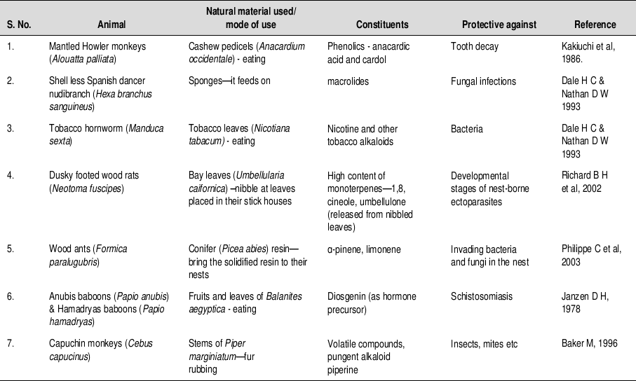 Table 13.1 Zoopharmacognosy—Some more reported observations