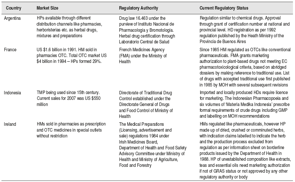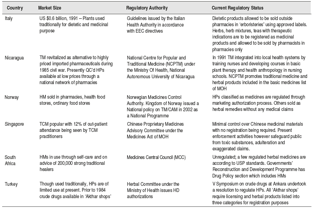 Table 4.1 Regulatory situation of herbal drugs in selected countries